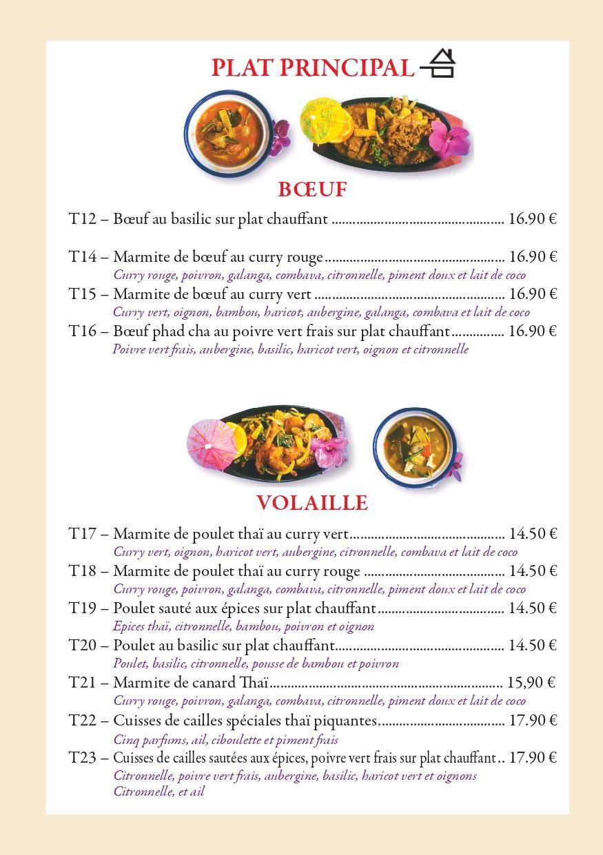 Des spécialistés thaïlandaises diverses et variées